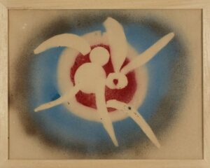 4/5/6 – David Smith, Projets de sculpture (1960 et 1963), peinture à la bombe aérosol en négatif et acrylique sur papier, 40 x 51,5 cm ; 31,7 x 48,5 cm ; 33,5 x 49,5 cm