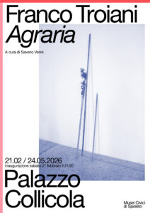 Il titolo, Agraria, rimanda a una visione che attraversa in profondità la pratica di Troiani, evocando un’operosità legata alla terra, ai suoi cicli e a un’idea di “fare arte” fondata su semplicità, metodo e continuità. Il riferimento alla dimensione agricola non assume un valore iconografico, ma si configura come principio operativo e orizzonte etico: un atteggiamento vicino a un ruralismo contemporaneo, distante dal consumo e dalla spettacolarizzazione, fondato sulla condivisione dei processi e su un pensiero critico costruttivo. La terra umbra emerge come matrice strutturale del lavoro, rintracciabile nei processi di realizzazione e nei materiali delle opere.