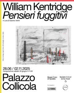 Sabato 28 giugno 2025, a partire dalle ore 11.00, è in programma l’inaugurazione delle nuove mostre a Palazzo Collicola, a Spoleto. Il ciclo, che durerà per tutta la stagione estiva fino al 2 novembre, include cinque nuovi progetti espositivi: una personale dell’artista di fama internazionale William Kentridge dal titolo Pensieri fuggitivi; una mostra con una selezione di opere provenienti dalla collezione di Primo De Donno; una mostra dei manifesti del Festival dei Due Mondi; una personale di Stefano Cerio da titolo Corpi d’aria; un’esposizione per celebrare i dieci anni di