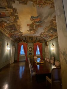 Accolti in un’atmosfera ricca di storia, abbiamo potuto esplorare gli ambienti del palazzo, ammirarne le architetture eleganti, scoprire racconti e curiosità legate sia alla famiglia Marignoli di Montecorona che alle trasformazioni subite dall’edificio nel corso dei secoli.